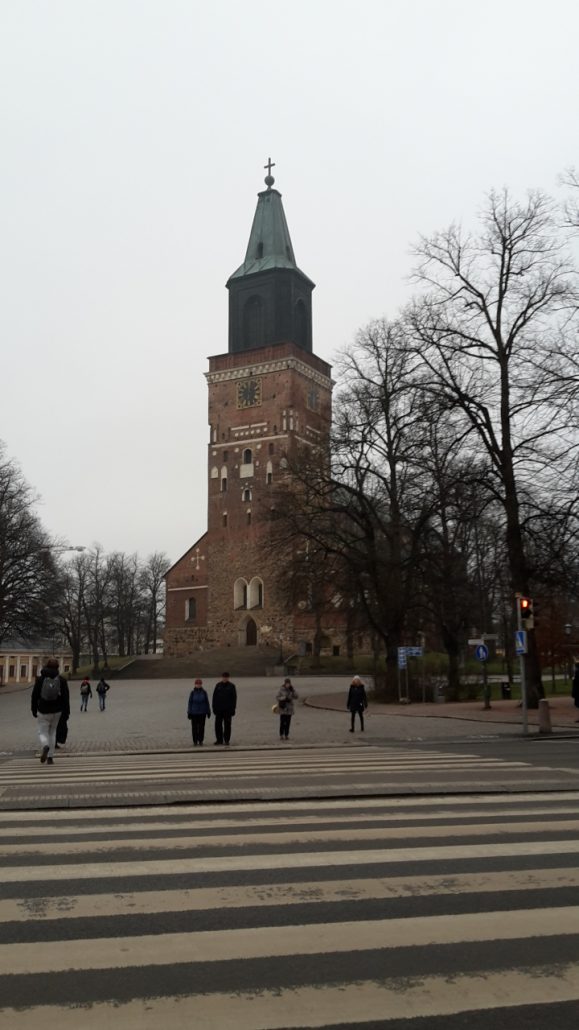 Heute war der erste Tag in Finnland, den ich bei Tageslicht begonnen habe, denn ich konnte gemütlich ausschlafen. Nach einem leckeren Frühstück machten wir — Ella (eine Freundin, mit der ich mich in Turku getroffen habe) und ich — uns zum Zentrum der Stadt auf. Da das Wetter nicht ganz so schlecht war, liefen wir die 3 km von unserem Apartment bis vor das Tor des Doms zu Fuß. Dann besichtigten wir den kleinen Hafen und wärmten uns anschließend im großen Einkaufszentrum auf. Wieder daheim angekommen gönnten wir uns einen heißen Tee und einen Dounut (mit zwei versch. Füllungen, zwei versch. Glasuren und Minimarshmallows drauf!!). Zum Abendessen gab es selbstgemachte Pizza. Den restlichen Abend ließen wir mit Kartenspielen gemütlich ausklingen.