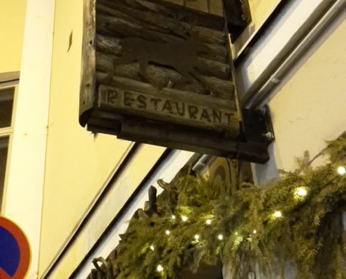 Denn dort hatten wir gemeinsam mit Johannes einen Tisch in einem Restaurant mit typischen Gerichten aus Lappland reserviert und trafen uns mit Johannes. Das Restaurant „Lappi“ ist sehr rustikal und gemütlich eingerichtet und bildet einen tollen Kontrast zur Innenstadt. Die Bedienungen waren in die Tracht Lapplands gekleidet und so fühlte man sich schnell wie in einer komplett anderen Welt. Die Speisekarte bestand vor allem aus Rentierfleisch und Fisch, aber es gab auch einige Vorspeisen und Desserts. Die Gerichte, die wir bestellten, schmeckten uns allen sehr und wir verbrachten eine schöne Zeit dort. Zurück in der Kälte verabschiedeten wir uns von Johannes und besuchten noch einmal die Oodi Bibliothek.