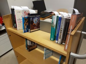 Da wir nun fast schon Profis in “Eden” sind, war das Sortieren der Bücher auch heute wieder unsere erste Aufgabe. Anschließend haben wir geschickt die Reservierungen und die Regale geräumt. Nach der Mittagspause bekamen wir einen kurzen Einblick in den Fremdsprachenbereich der Sello Bibliothek. Dort findet man neben englischen, französischen, deutschen oder spanischen Büchern auch einige Exemplare in Arabisch, Kurdisch und Chinesisch. Außerdem gibt es einen großen Bestand an russischen Büchern.