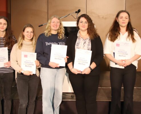 Kurz vor den Faschingsferien verabschiedete unser Schulleiter Norbert Sierl etwa 200 Absolvent:innen an der kaufmännischen Berufsschule. Im Rahmen der Feier erhielten mehr als 150 Azubis ein Abschlusszeugnis, fast ein Viertel der Absolvent:innen schloss die Ausbildung mit Note 1,5 oder besser ab, 11 erzielten sogar die Traumnote 1,0.