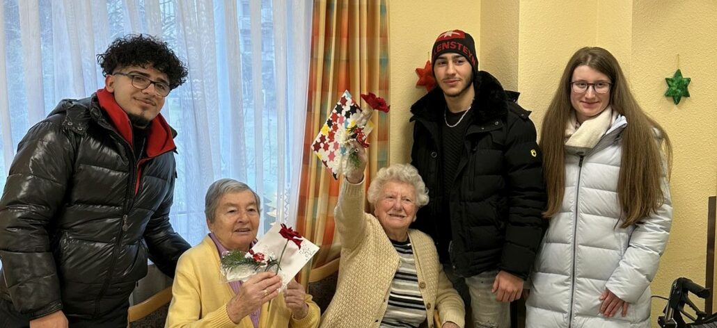 Die Schüler und Schülerinnen der 10. Klasse des Berufsvorbereitungsjahres schrieben im Rahmen eines Projektes im Deutschunterricht Weihnachtspost, bastelten Weihnachtsanhänger und sorgten so für strahlende Gesichter bei den Bewohnerinnen des Seniorenheimes.