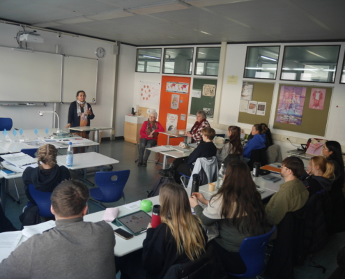 Begleitet wurde Schwester Jema von Frau Hofmann und Frau Kellner von der Gemeinschaft der Missionshelferinnen in Bad Kissingen, bei denen sie für einige Wochen zu Besuch ist. Aber weshalb besuchte Schwester Jema gerade die Klara-Oppenheimer-Schule?