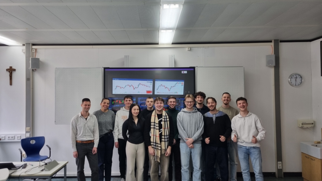 Die 12. Klasse der Kaufleute für Versicherung und Finanzanlagen (12 VF 1) hat im Schuljahr 2025/26 erfolgreich am Planspiel Börse der Sparkasse Würzburg teilgenommen. Im Zeitraum von September 2025 bis Januar 2026 hatten unsere Schüler die Möglichkeit, ein virtuelles Depot zu managen. In diesem spannenden Wettbewerb konnten die Schüler wertvolle Erfahrungen im Bereich Investieren und Wertpapiere sammeln. Durch das praktische Spiel lernten sie, Marktbewegungen zu analysieren und strategische Entscheidungen zu treffen. Die Teilnahme förderte nicht nur ihr Verständnis für finanzielle Zusammenhänge, sondern auch Teamarbeit und verantwortungsvolles Handeln.