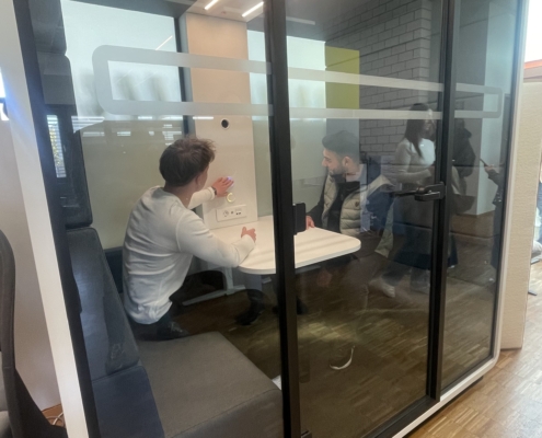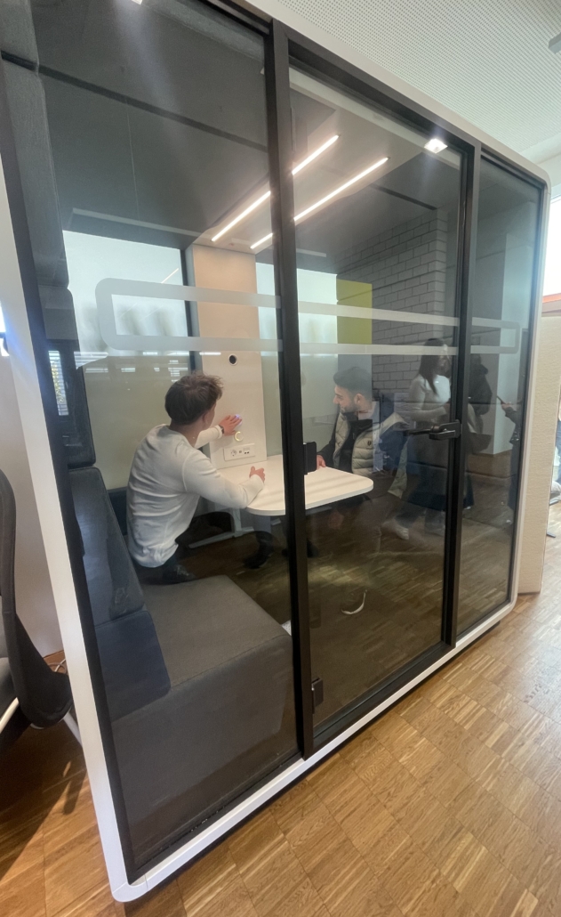 Mit Interesse stellten die Lernenden fest, dass in modernen Büros heute neben dem klassischen Schreibtisch auch Gesprächskabinen, Lounge-Sessel und sogar Tribünen zu finden sind. Je nach Anlass unterstützen diese Elemente konzentriertes, entspanntes oder kommunikatives Arbeiten.
