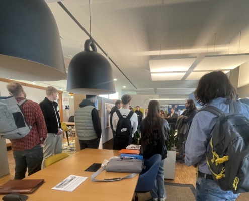 Darüber hinaus erlebten die Schülerinnen und Schüler, wie individuell steuerbare Beleuchtung und eine durchdachte Akustik das Wohlbefinden und die Konzentration der Mitarbeitenden positiv beeinflussen. Beleuchtungselemente und Deckensegel überzeugen dabei funktional und sehen auch noch gut aus.
