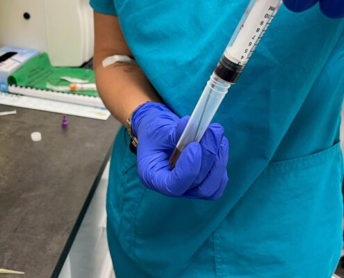 Unser erste Patient war ein 89‑jähriger Herr, der beim Palmen schneiden von der Palme gestürzt ist. Bei ihm haben wir den Verband gewechselt und einen neuen Termin zur Kontrolle vereinbart. Danach ging es weiter mit einen Kleinkind bei dem wir einen Corona-Test durchgeführt haben, der leider positiv war. Dies haben wir dokumentiert um uns dann um eine Frau mit einen Glassplitter im Fuß zu kümmern. Nachdem der Splitter entfernt war, haben wir neben einer Ohrspülung und Verbandswechseln über den Tag verteilt mehrere Infusionen vorbereiten: für einen Patienten mit leichter Grippe, für eine Dame, die über Haarausfall klagte, und eine Antiaging Infusion für die letzte Patientin des Tages. Zwischen den Patient:innen hat mir meine Kollegin immer wieder medizinische Geräte in der Praxis erklärt und vorgeführt.